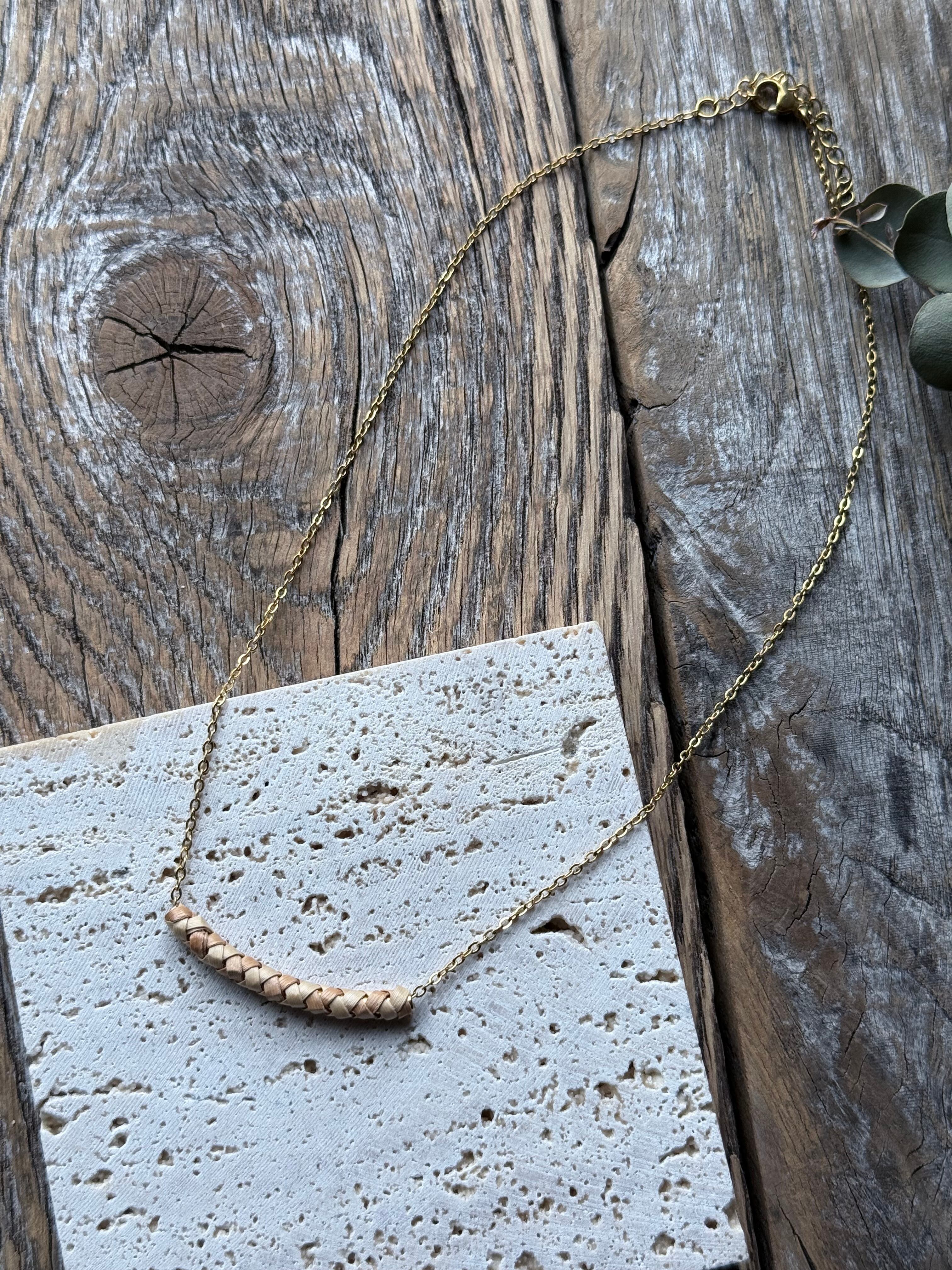 月桃を乾燥させて編み込んだネックレスです。