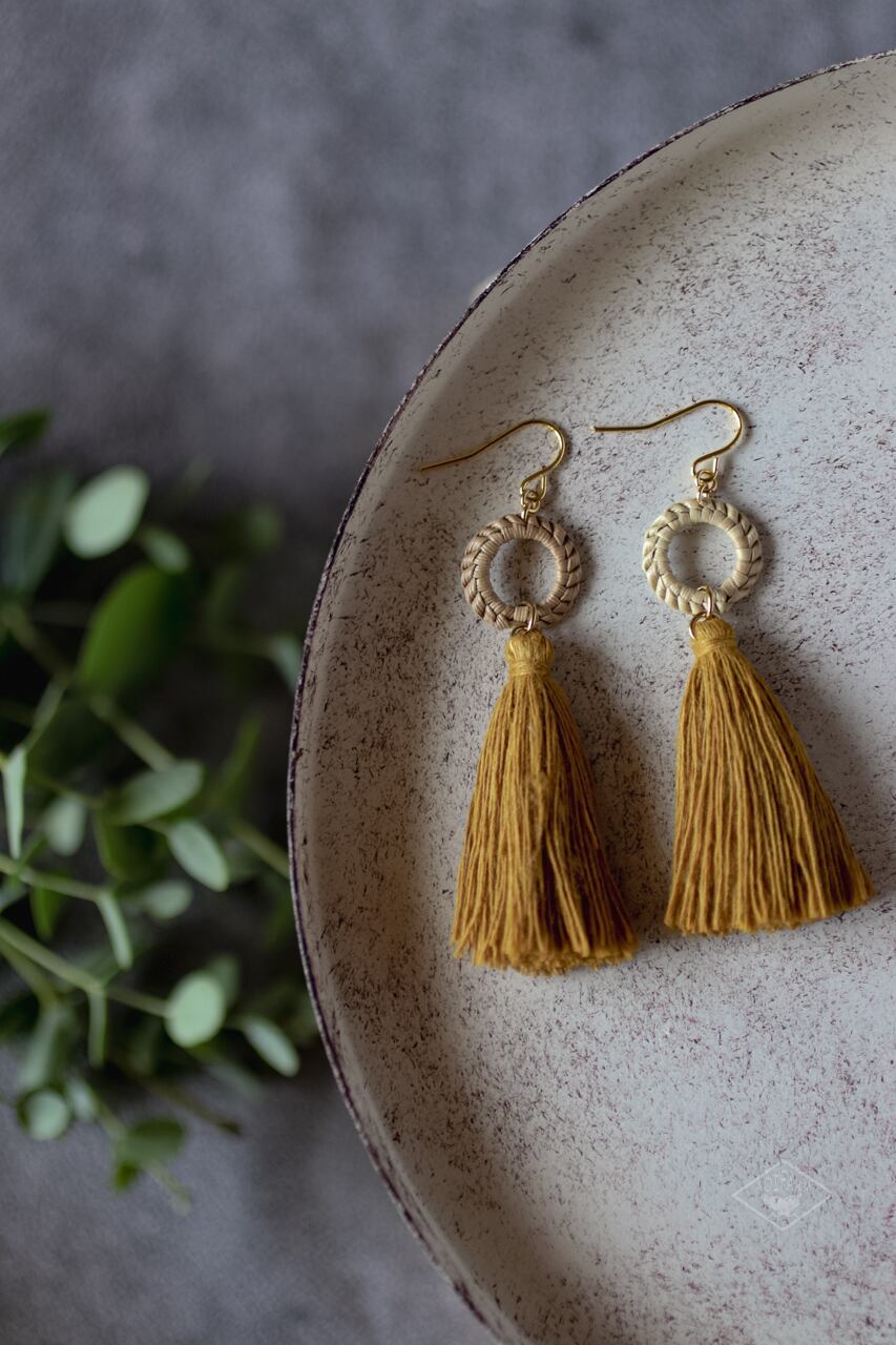 優しいからし色の糸で
