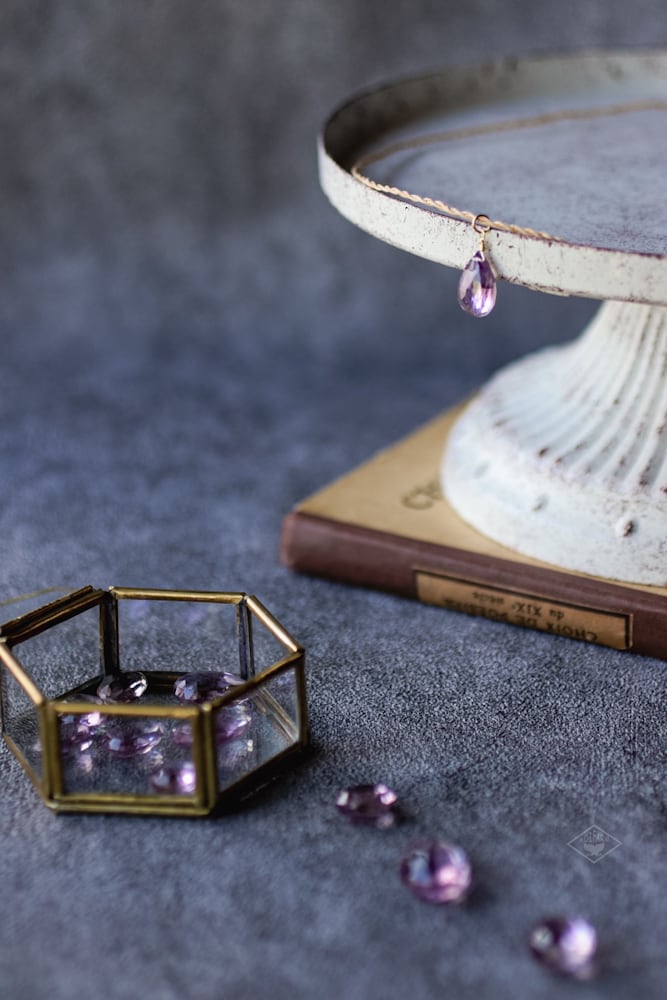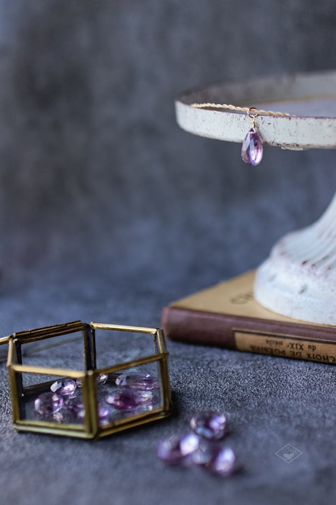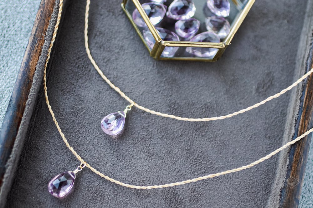 この薄紫色が透き通るアメジストをみて一目惚れ。