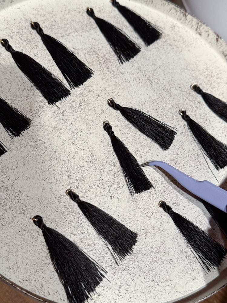 一本一本手で編み込み