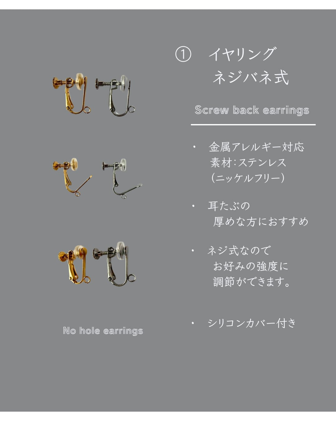 金具部分は金属アレルギー対応の